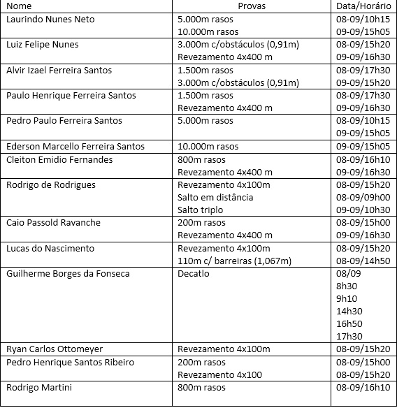 Confira os horários em que os atletas caçadorenses estarão competindo e prestigie: