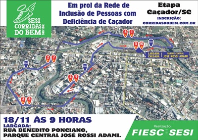 O objetivo do evento é estimular a qualidade de vida e o bem-estar da comunidade em geral. A Corrida do Bem farmaSESI 2018, o maior circuito de corridas de Santa Catarina, propõe unir o incentivo à cultura esportiva e prática de fazer o bem. Por isso, parte do valor das inscrições será revertida para a Rede de Inclusão de Pessoas com Deficiência de Caçador.