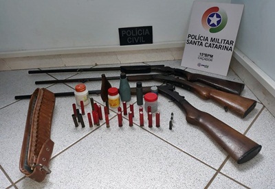Os trabalhos iniciaram bem cedo, com a participação de dez policiais civis e dez militares. Além das duas prisões, foram cumpridos cinco mandados de busca e apreensão. Recolhidas três espingardas, calibres .36, .32 e .28, bem como diversas munições.