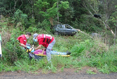 Uma pessoa ficou ferida depois que um veículo saiu de pista na tarde desta sexta-feira, 26 de outubro na Rodovia SC-135, entre Caçador e Calmon. O jovem de aproximadamente 25 anos trafegava como carona no carro e teve lesões leves.