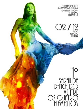 A Secretaria de Cultura, Esporte e Turismo de Caçador realiza o 1º Sarau de Dança do Ventre, com o tema “Os Quatro Elementos”. O evento acontece dia 2 de dezembro, às 19h, no Teatro da UNIARP. Serão 21 coreografias, que envolverão taças com velas, véus, e espadas para representar o Ar, Água, Terra e Fogo.
