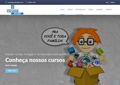 A Prefeitura de Caçador está lançando o Portal www.cacadordigital.com.br. Nele, estão disponíveis 30 opções de cursos de educação a distância, totalmente gratuitos e com certificado, que vão desde o conhecimento básico, intermediário e avançado, até cursos profissionalizantes.