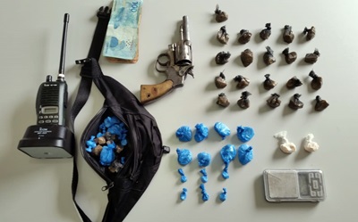 No total foram apreendidas 56 porções de cocaína e crack, R$ 1.366,00 em dinheiro, um revólver calibre .38 e um automóvel que era utilizado para a distribuição de drogas.