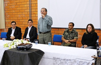 Além do prefeito de Caçador, Imar Rocha; a secretária de Educação, Luciane Pereira; o secretário Regional, Beto Comazzetto; Ieda Moschetta, presidente do Conselho Municipal de Educação (Comed); Luiza Samira Flores Alves, coordenadora do evento; e Claudinei Mantuani, subtenente do Tiro de Guerra participaram do Seminário.