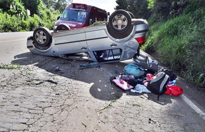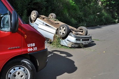 No total havia seis pessoas no interior do carro, dentre elas duas crianças, porém apenas dois homens sofreram ferimentos leves.