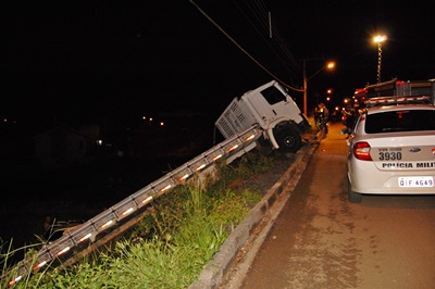 O caminhão também acabou caindo no barranco, sendo impossível o mesmo continuar rodando.
