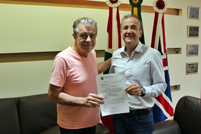 O ex-deputado federal Marco Tebaldi (PSDB) fez a entrega de uma emenda, da bancada do partido, no valor de R$ 500 mil, ao prefeito Saulo Sperotto.