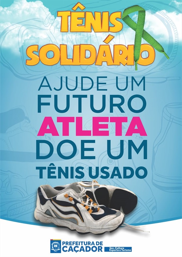 A Secretaria de Cultura, Esporte e Turismo de Caçador lançou a campanha “Tênis Solidário”. O objetivo é arrecadar calçados, que serão distribuídos para os alunos mais carentes das escolinhas esportivas. Na manhã do dia 6 de abril, uma equipe estará recolhendo doações no Largo Caçanjurê.