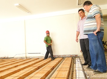 Trabalhos seguem acelerados e aulas estão sendo no ginásio, onde grande estrutura foi montada