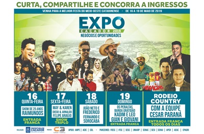 Quer concorrer á ingressos para curtir os shows nacionais da ExpoCaçador? Então não perca a promoção do PortalCDR que vai sortear quatro ingressos VIP’s para este super evento.