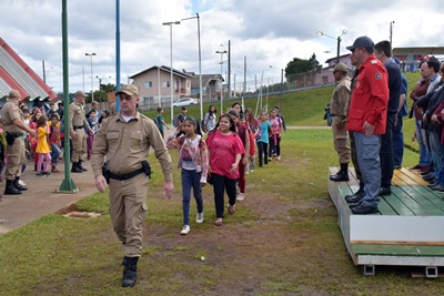 “Estamos resgatando com estas crianças o respeito aos símbolos nacionais, às autoridades, à figura do professor, diretor, merendeira, do pai”, destacou o comandante da PM de Caçador, tenente-coronel Renato Leandro de Medeiros.