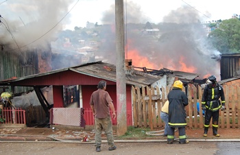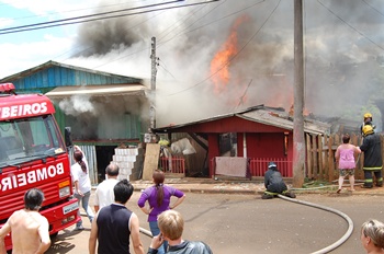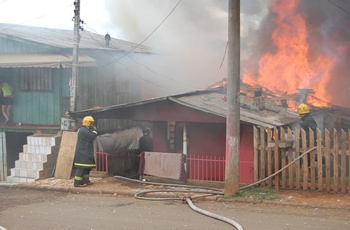 O Corpo de Bombeiros Voluntários de Caçador trabalhou pesado na tarde desta quinta-feira, 24. Um incêndio de grandes proporções destruiu sete residências na Rua Luis Totatto, próximo a Igreja Assembleia de Deus.