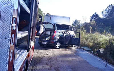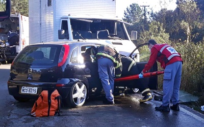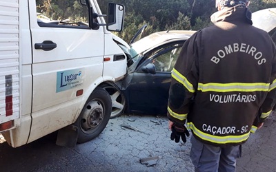 Um acidente de trânsito envolvendo um caminhão e um veículo de passeio feriu um casal e uma criança de 8 anos, na manhã desta segunda-feira, 17 de junho. A colisão ocorreu por volta das 8h30min, na SC-350, próximo ao Sítio do Bugrão, entre Caçador e o Distrito de Taquara Verde.