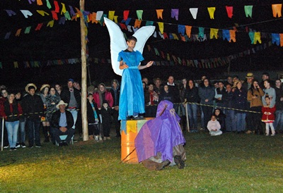 Além das comidas típicas e do acendimento da fogueira, teve queima de fogos e apresentações teatrais organizadas pela família e membros da própria comunidade.
