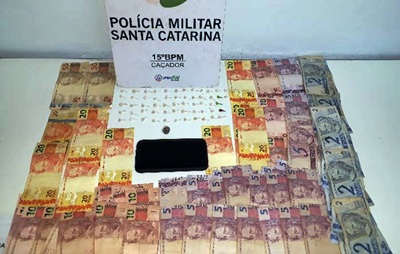 Em buscas no interior da casa foi encontrado pelos policiais a quantia de R$ 902,00 em espécie fracionado em notas miúdas. Questionado, sobre a procedência da droga e do dinheiro o homem afirmou que era de sua propriedade e confirmou que efetuava a prática ilícita em sua residência.