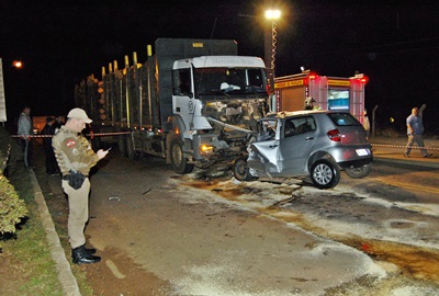 De acordo com informações, um veículo VW Fox placas de Tijucas, seguia em direção a Lebon Régis, quando o condutor perdeu o controle da direção e invadiu a pista contrária, batendo de frente contra um caminhão carregado de toras de pinus.