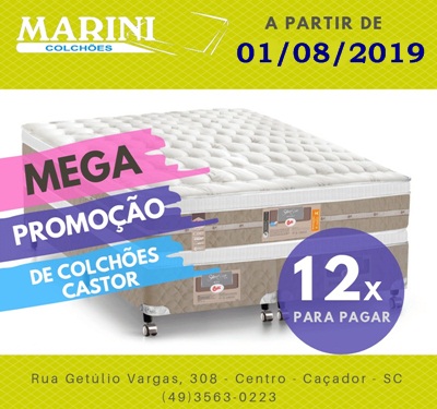 A Loja Marini, em parceria com Colchões Castor, uma das maiores marcas do país, lança uma uma Mega Promoção. Será uma ótima oportunidade para você adquirir um colchão de alta qualidade, com preços e prazos mais do que especiais.