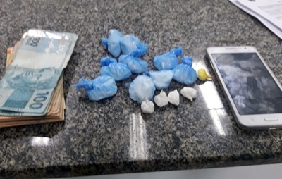 Ao realizarem a abordagem, e em revista pessoal no rapaz, os policiais encontraram em uma pochete, dentro de suas calças, 14 invólucros de cocaína. Além de R$ 900 em espécie, possivelmente oriundos do tráfico, confessado por ele.