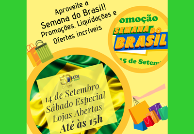 A Semana do Brasil, foi idealizada pelo governo federal com objetivo de movimentar a economia, incentivando as vendas do varejo local, e possibilitando aos clientes adquirirem produtos e serviços com preços muito especiais, assim a empresas associadas a CDL estão oferecendo um período de muitas vantagens para os consumidores.