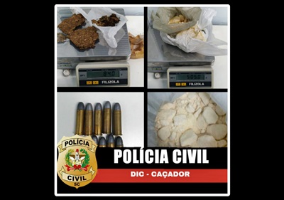 Na tarde desta sexta-feira, agentes da Divisão de Investigação Criminal (DIC) de Caçador deram cumprimento a mandados de prisão preventiva e busca e apreensão em desfavor de E.C.B., 19 anos, em razão de investigação pelos crimes de tráfico de drogas e organização criminosa.