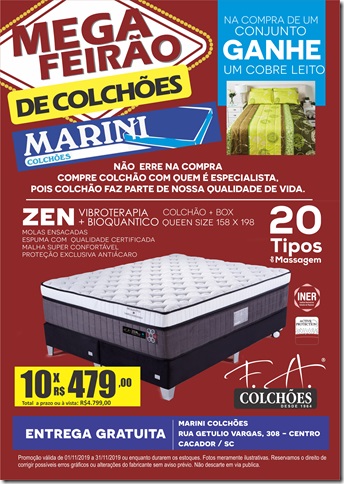 Começa nesta quinta-feira, 7 de novembro, a maior promoção de colchões que Caçador já viu! O Mega Feirão da loja Marini Colchões.