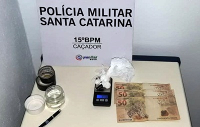 Também no carro foram encontrados R$ 150 em espécie, uma balança de precisão e 5 gramas de Cocaína embaladas em envolucro de plástico.