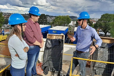 O prefeito em exercício, Alencar Mendes, e a secretária de Agricultura, Christiane Driessen, estiveram na BRK Ambiental, empresa concessionária do serviço de água e esgoto em Caçador, para verificar como está o andamento do sistema e a colocação em funcionamento de novos filtros por parte da empresa.