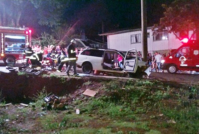 Um acidente de trânsito foi registrado na noite deste domingo, 09 de fevereiro, na esquina da Avenida Aristiliano Ramos com a Rua Gualberto Ramalho próximo ao estádio municipal. Cinco pessoas, entre elas duas crianças, estavam numa Parati, branca com placas de Caçador que bateu forte contra um poste.