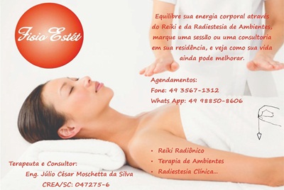 Através de técnicas de Geobiologia, Radioestesia Clínica e Reiki Radiônico o Consultor e Terapeuta Júlio Moschetta, em parceria com a FisioEstét te ajudará a resolver os problemas acima citados.