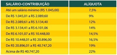 Confira as novas alíquotas na tabela abaixo: