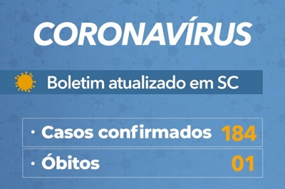 Santa Catarina tem 184 casos confirmados e uma morte por Covid-19, conforme boletim divulgado pelo governador Carlos Moisés em coletiva de imprensa neste sábado, 28. Brusque, Urussanga, Papanduva e São Francisco do Sul entraram para a lista de cidades com casos confirmados. O número representa um acréscimo de 12% de casos positivos em relação ao balanço divulgado na noite de sexta-feira.