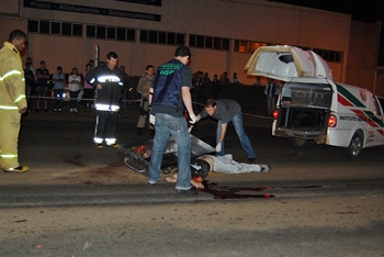 Na madrugada do sábado, 22 de outubro, dois acidente envolvendo motociclistas, resultaram em morte. O primeiro deles aconteceu por volta das 2h20, na Avenida Fahdo Thomé, proximidades do Instituto Federal. Gilson Ricardo Campaim, 21 anos, se conduzia sentido Parque de Exposições/Centro com uma Honda Biz, quando perdeu o controle e colidiu violentamente contra um poste. Jociele Pereira, 24 anos, que trafegava na garupa da moto, morreu ainda no local do acidente.