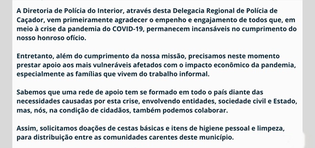 Polícia Civil lança Campanha de arrecadação de alimentos