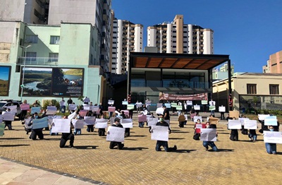 Na sequência, o grupo se dirigiu ao Calçadão da Praça João Costa, onde, de joelhos, pediram o retorno ao trabalho.