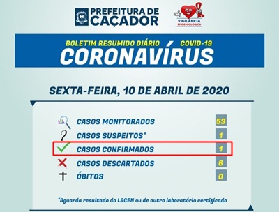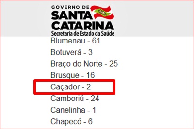 No relatório oficial do governo de Santa Catarina, divulgado nesta sexta-feira, 10 de abril, o município de Caçador aparece com dois casos confirmados por Coronavírus. Enquanto isso, os dados divulgados Vigilância Epidemiológica do município informam apenas um caso, que seria de uma mulher de 57 anos, anunciado na última segunda-feira, dia 6. Clique aqui para ver o relatório oficial.
