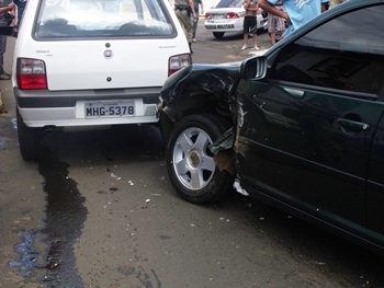 De acordo com populares, o Golf saia de estacionamento quando foi atingido pelo Uno em alta velocidade