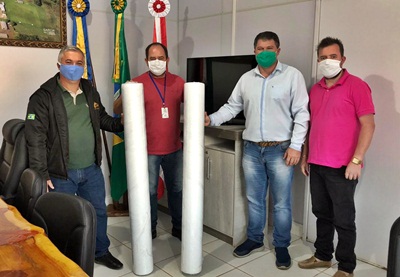 Foram entregues na sexta-feira (17) pelo representante da empresa Luciano Dalponte, duas bobinas de TNT, que partiu de uma doação realizada pela empresa do Grupo Sul Brasil de Caçador. O TNT está sendo utilizado para a confecção de máscaras que serão disponibilizadas a toda a população de Calmon.