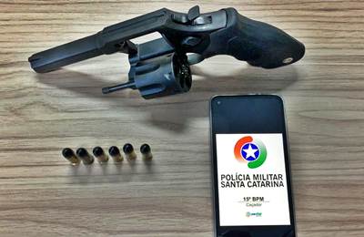 A guarnição do Pelotão de Patrulhamento Tático – PPT, de Caçador, em rondas pelo assentamento Putinga, interior do município de Calmon, realizou, na tarde desta segunda-feira, 4 de maio, a abordagem de um homem que conduzia uma motocicleta em via pública. Como procedimento de praxe, ele foi submetido à revista pessoal, sendo localizado com ele um revólver calibre 38 e seis munições intactas.