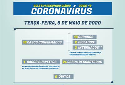 O boletim diário da vigilância Epidemiológica de Caçador, desta terça-feira, 5 de maio, traz boas notícias. Mais um paciente está curado de Covid-19 no município. Além disso, mais dois casos suspeitos foram descartados.