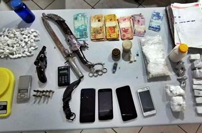 Além disso, também foi localizada uma arma de fogo, munições, facas e uma quantia considerável em dinheiro.