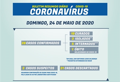 O boletim deste domingo, 24 de maio, do número de contaminação por COVID-19 em Caçador, não teve alterações com relação aos números divulgados no sábado. Segundo os dados divulgados pela Vigilância Epidemiológica, o município continua com 28 casos confirmados, sendo que 19 estão curados; 5 estão internados no Maicé; 3 isolados em casa ou em outro local e um paciente foi a óbito.