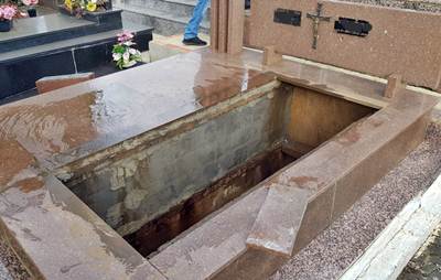 Sobre a pedra de granito, os policiais confirmaram que realmente o objeto foi subtraído de um jazigo de mortos do cemitério. Tal fato será investigado em inquérito que terá como investigado o homem que fugiu dos policiais.
