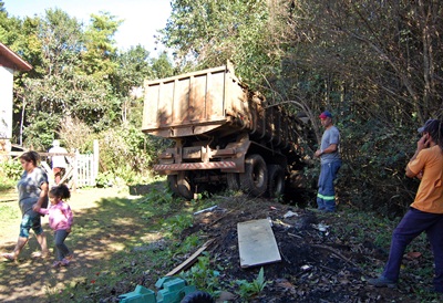 Com a força da colisão, a caminhonete foi projetada contra o muro de uma residência, e ficou bastante destruída. Já a caçamba, ainda percorreu uma distância de aproximadamente 200 metros até parar, numa valeta ás margens do Rio Caçador.