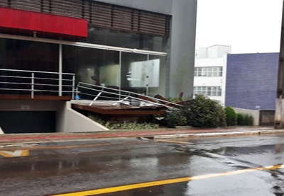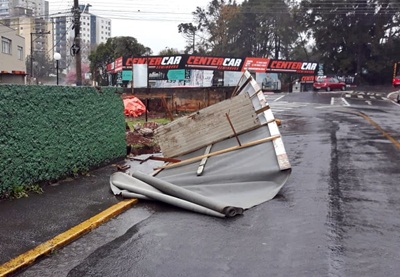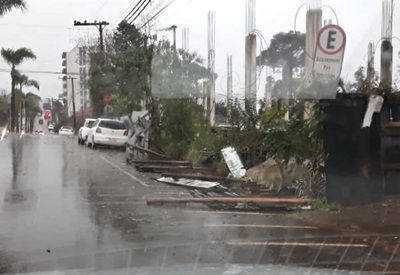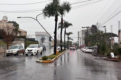 Em Caçador, o vendaval atingiu diversos bairros e também o Centro da cidade.