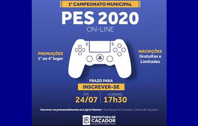Caçador terá, a partir do dia 27 de julho, o 1º Campeonato online de Futebol Virtual PES 2020 na plataforma PS4, que será realizado pela Prefeitura. A coordenação será da Secretária de Cultura, Esporte e Turismo.