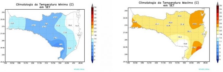 De acordo com Gilsânia Cruz, em setembro as temperaturas devem ter mínimas de 7°C a 10°C do Oeste ao Planalto e Litoral Sul. Nas demais regiões, as temperaturas mais baixas ficam entre 12°C a 15°C.