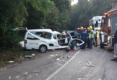O acidente foi por volta das 5h no km 672 da BR-282, que liga o Litoral ao Extremo-Oeste catarinense. Segundo a Polícia Rodoviária Federal (PRF), o veículo com placas de Saudades (SC) que transportava um corpo invadiu a pista contrária e bateu de frente no caminhão de Seberi (RS) carregado de frios.