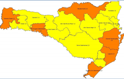 Nessa quinta-feira, 22 de outubro, o Governo do Estado encaminhou o informativo atualizado da Matriz de Risco com os dados que mostram que a Associação dos municípios do Alto Vale do Rio do Peixe (Amarp), saiu do nível “Grave” (laranja) e avançou para o nível “Alto” (amarelo).