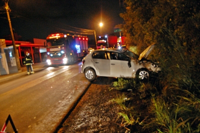 Um VW Gol saiu de pista e bateu num barranco na noite desta segunda-feira, 9 de novembro, na Rodovia Comendador Primo Tedesco, em Caçador. O acidente aconteceu por volta das 21h40, nas proximidades do elevado Primo Tedesco.