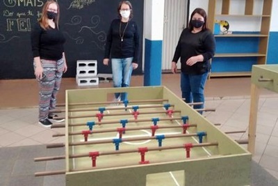 Alunos e docentes da Educação de Jovens e Adultos do SESI de Caçador desenvolveram um projeto que alia matemática e esportes. Eles confeccionaram duas mesas pebolim utilizando materiais recicláveis. O trabalho foi realizado pela turma EJA Profissionalizante T04 na área de Matemática e suas Tecnologias, ministrada pela professora Bruna Dalmina, sob a supervisão Pedagógica de Odete Pereira da Rosa. Dia 04 de novembro as mesas foram entregues para a Escola Municipal Morada do Sol.